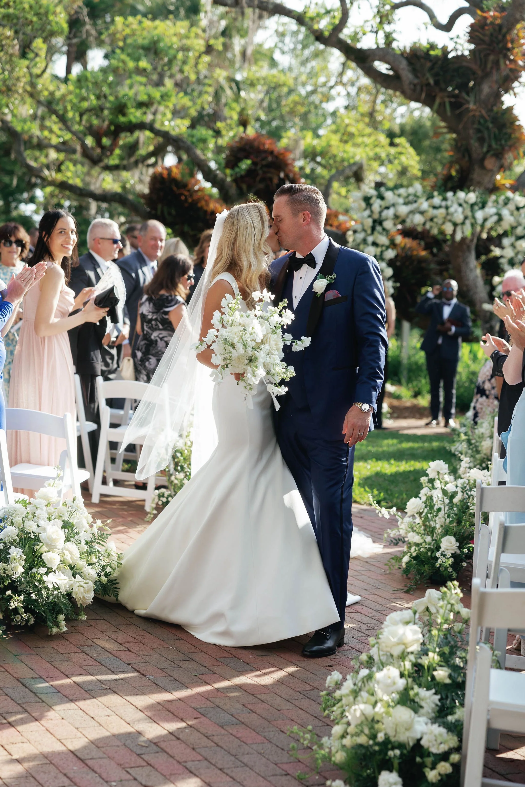 Olivia and Jason’s Wedding at Marie Selby Botanical Gardens in Sarasota, Florida, was the perfect blend of classic romance and whimsical garden charm. Their Ceremony beneath the majestic Oak Tree felt like something out of a fairytale, with garden white blooms, rich greenery, and soft neutral tones setting the scene. Guests were then welcomed to Cocktail Hour on the terrace and patio, surrounded by the natural beauty of the gardens and the promise of an enchanting evening ahead.